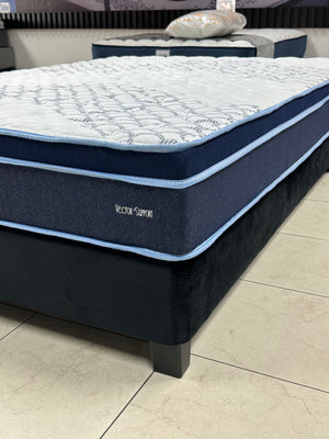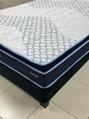 Ofrece un descanso firme con soporte progresivo gracias a su sistema Fly Top, que distribuye el soporte de manera uniforme y se adapta al cuerpo. Sus capas de Polycel HD, Nanocel y Fortocel brindan firmeza y confort equilibrados, mientras la tela stretch capitonada en tonos blancos y azules aporta frescura y estilo. No Turn System: no requiere voltearse.
