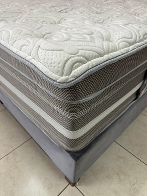 Unidad de resortes independientes Beautyrest que elimina los movimiento de pareja, placa de espuma de memory gel de 3cm que ayuda a disminuir los puntos de presión al momento de dormir aportando frescura a tu sueño, confort suave y refuerzo perimetral para un mayor soporte y duración; 10 años de garantía y 40 cm de altura.